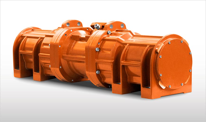 The SV electric motovibrator works like any other foot mounted electric model, providing vibrations to the vibrating machine on which it is installed. Two parallel SV are needed to provide linear motion to the vibrating machine while just one is necessary to provide circular motion.